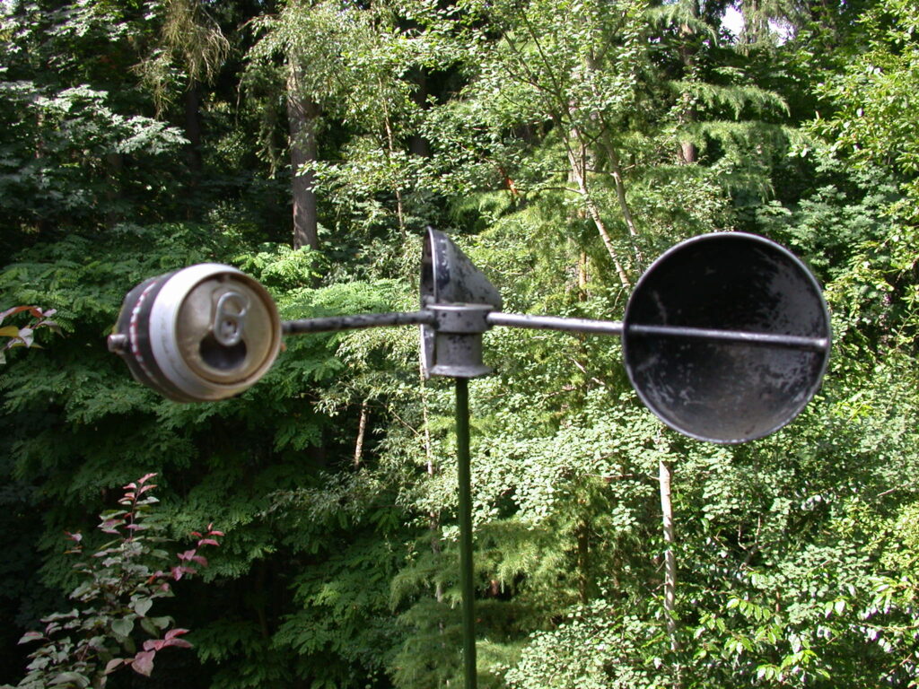 - A beer can cut in half replaced a lost anemometer cup so that wind data could still be collected.